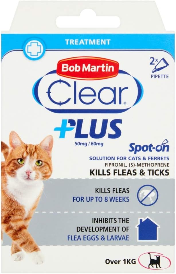 Bob Martin Clear Plus 50mg/ 60mg Spot-On Solution for Cats & Ferrets Treatment Over 1kg Fipronil, (S)-Methoprene.