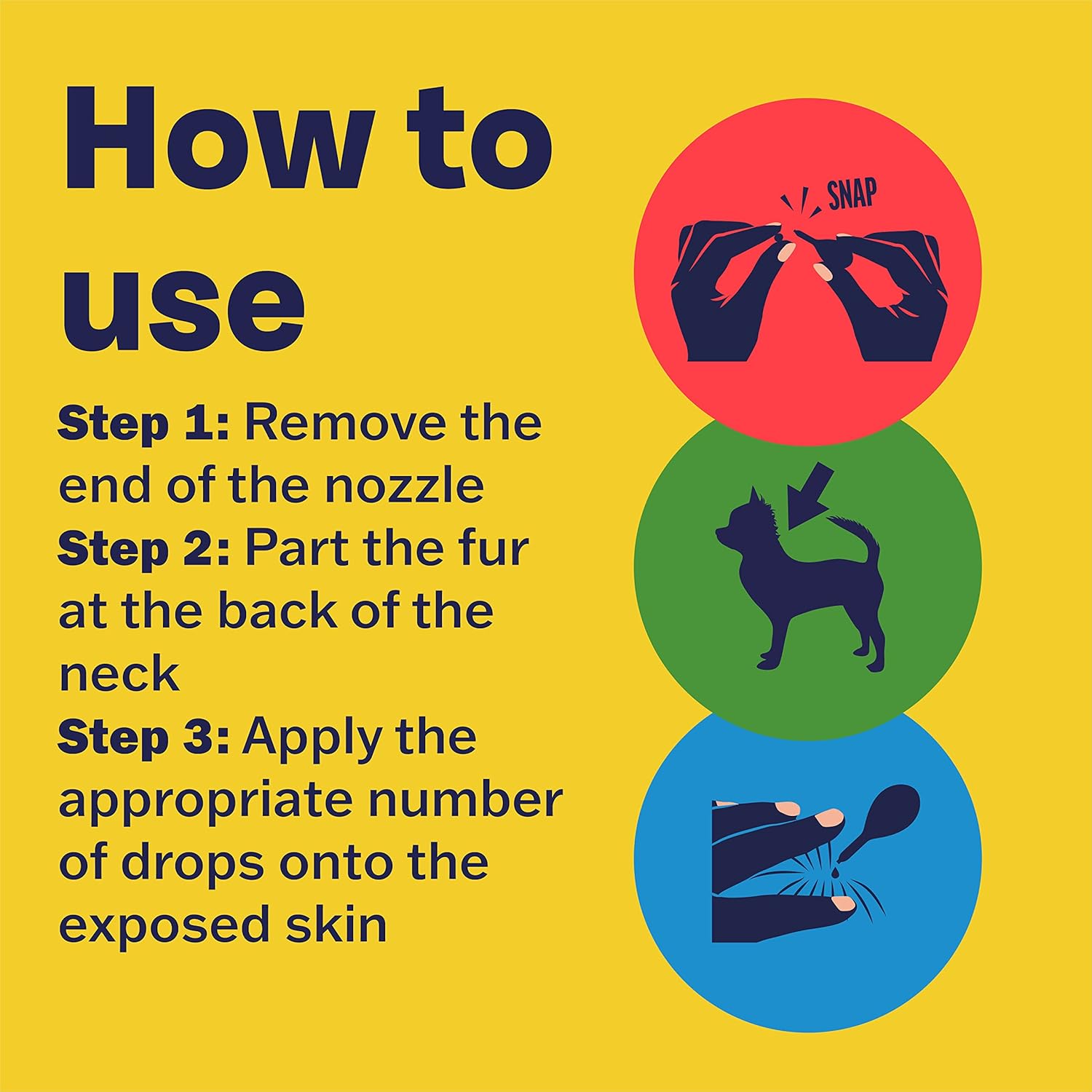 - HOW TO USE - Simply part your dogs coat until the skin is visible, place the tip of the pipette directly against the skin and gently squeeze. Apply half to the base of the back of the dog’s head and half between the shoulder blades.
