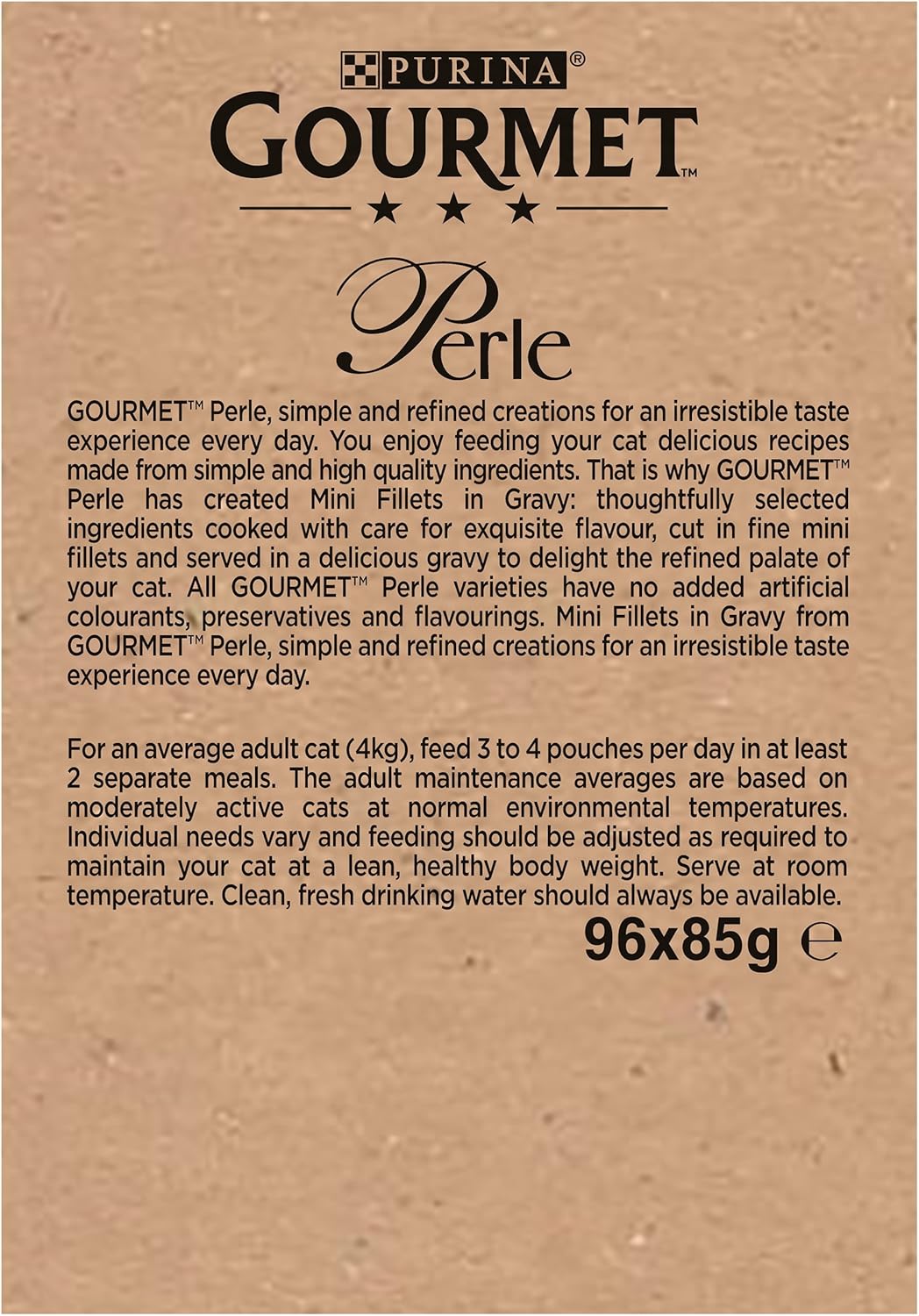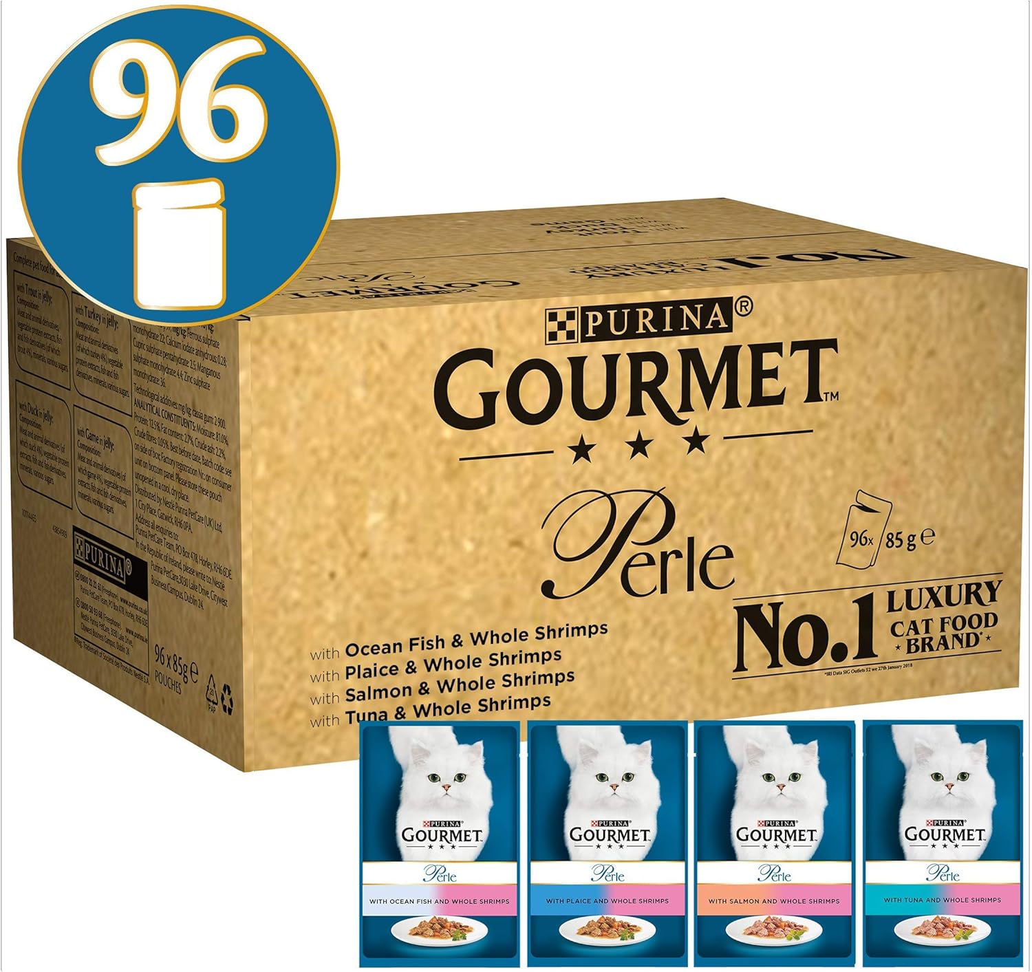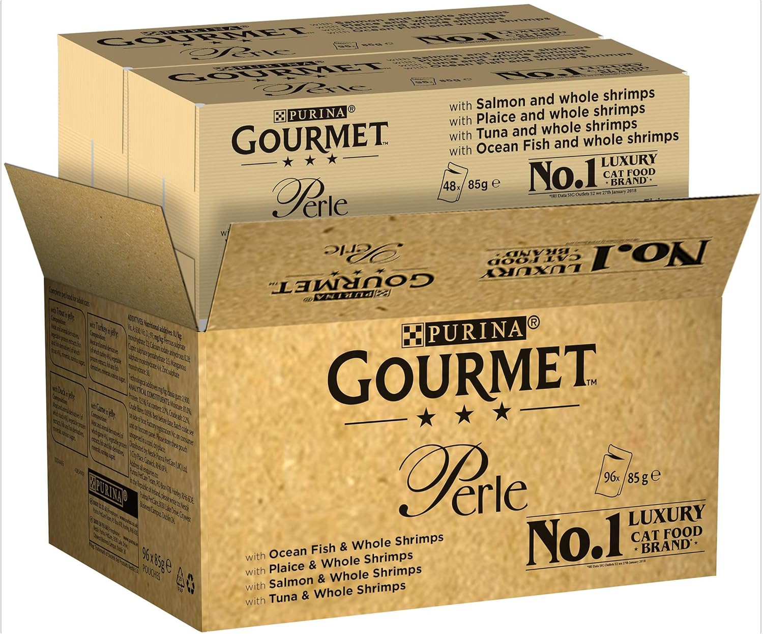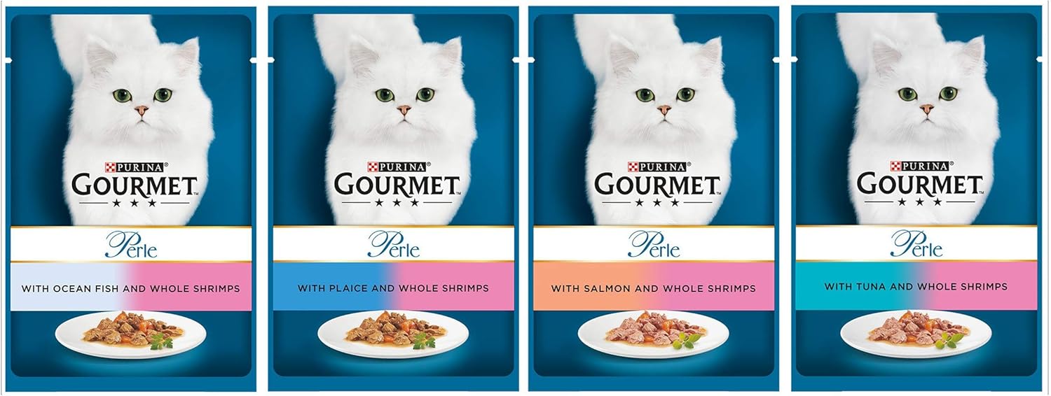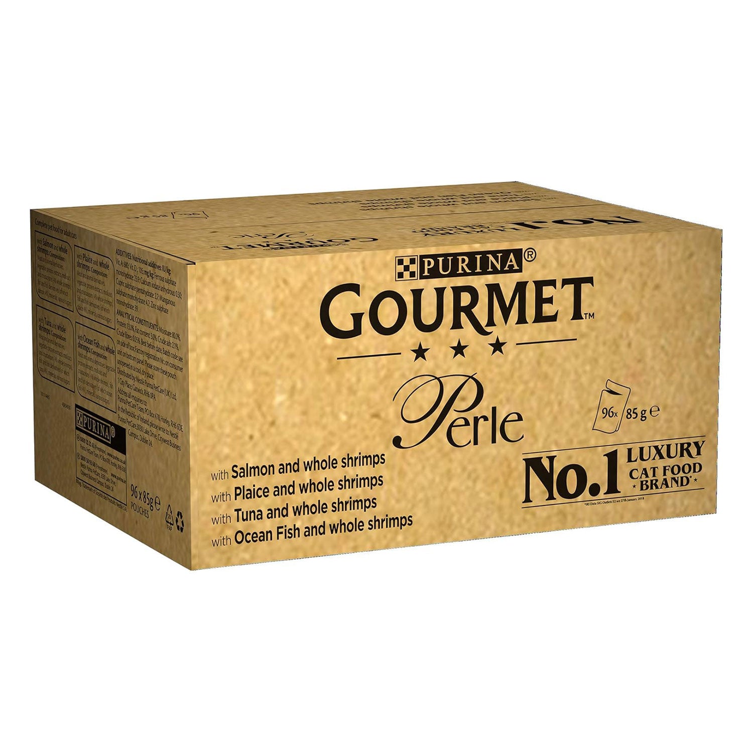 - Gourmet Perle adult wet cat food chef's collection in gravy with salmon, tuna, plaice, whitefish