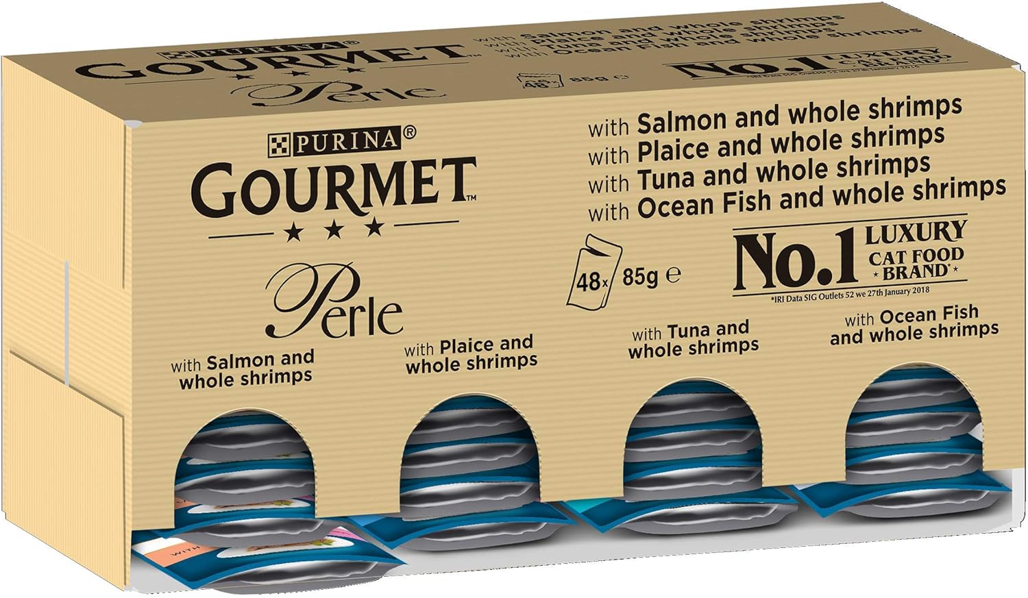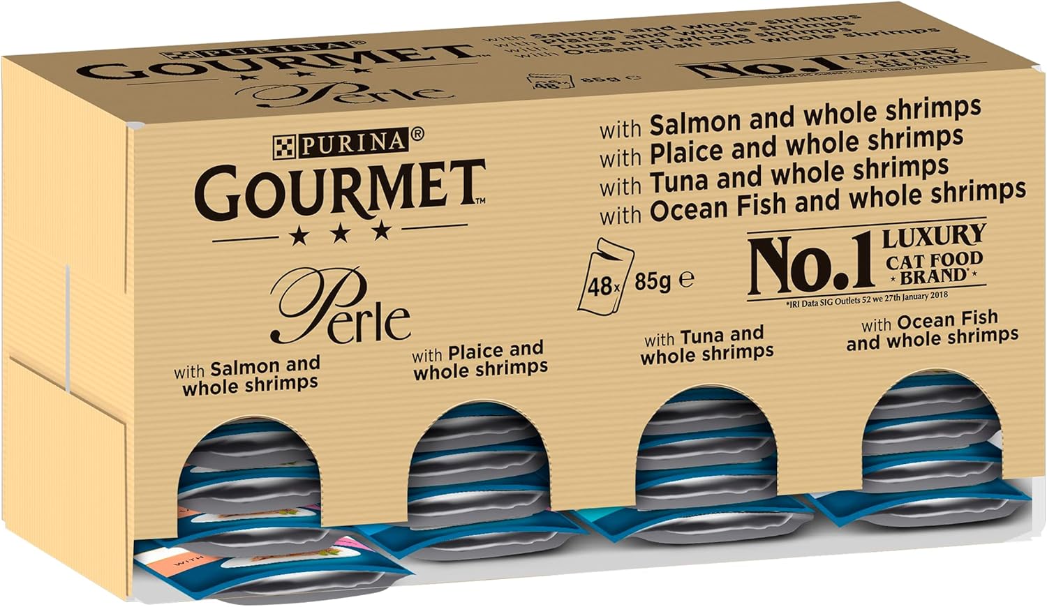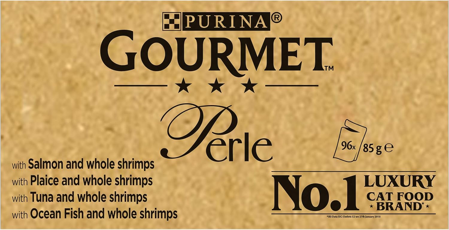 Gourmet Perle Adult Wet Cat Food Ocean Delicacies in Gravy with Salmon, Tuna, Plaice, Whitefish 4 x 12 x 85g Packs