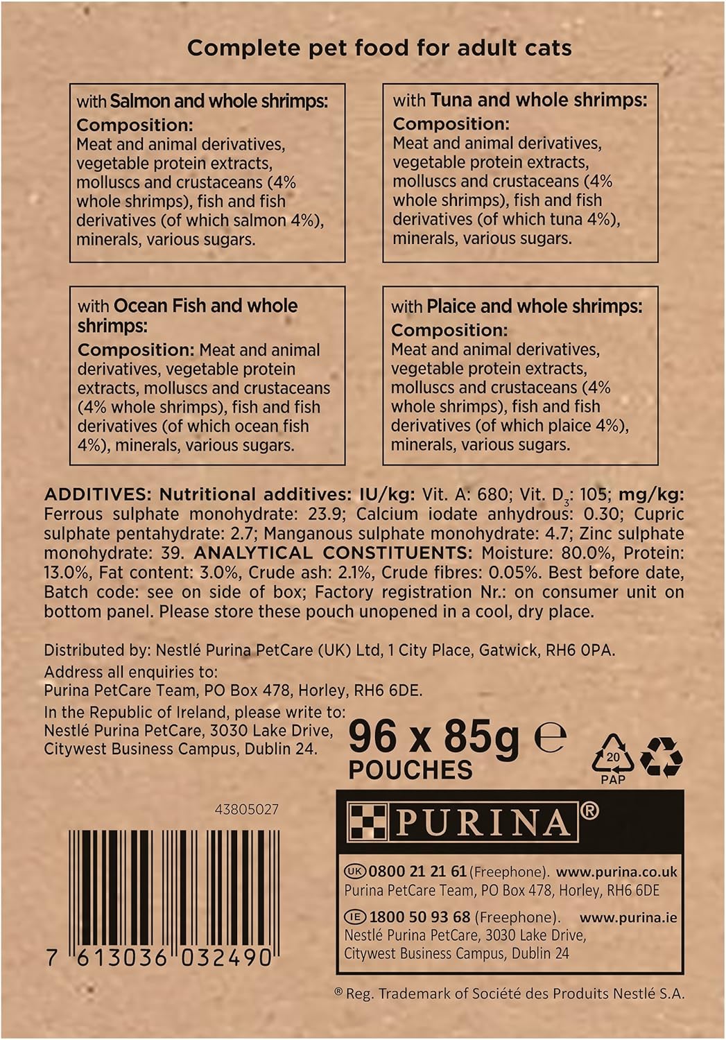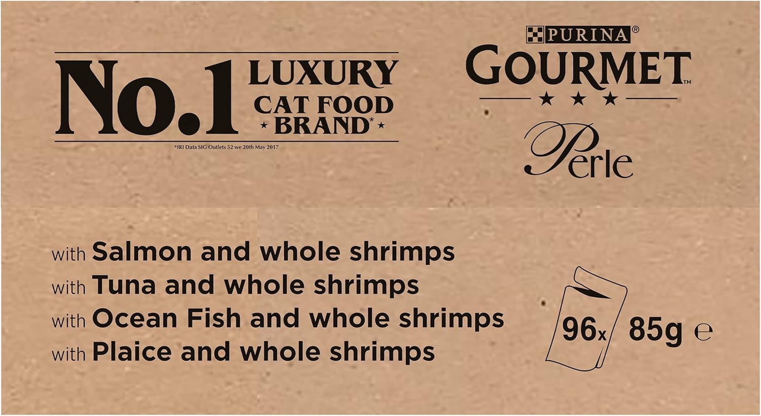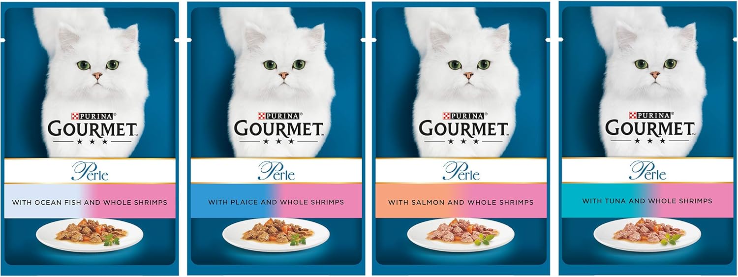 Gourmet Perle Adult Wet Cat Food Ocean Delicacies in Gravy with Salmon, Tuna, Plaice, Whitefish 4 x 12 x 85g Packs