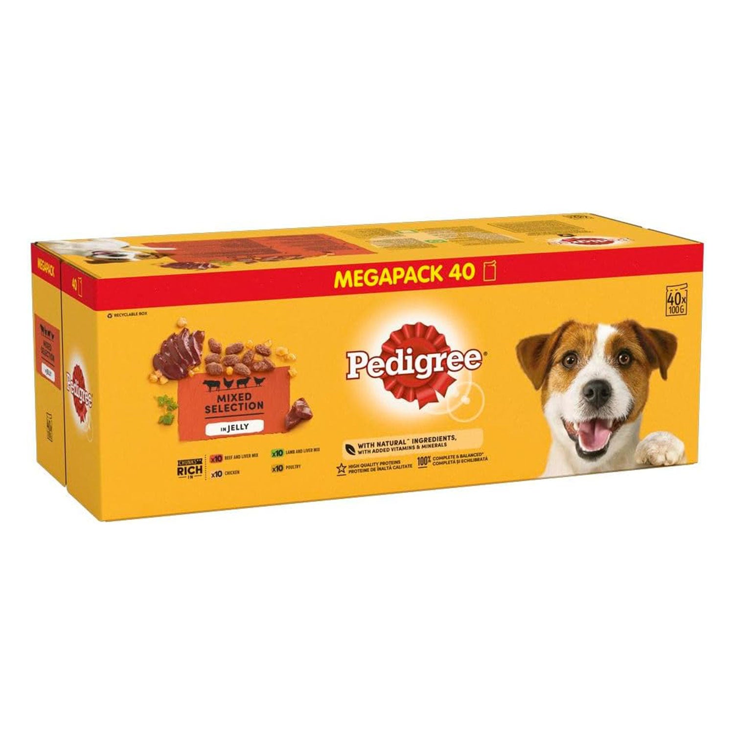 Pedigree Mixed Selection in Jelly 40 Pouches, Adult Wet Dog Food, Megapack (40 x 100 g)