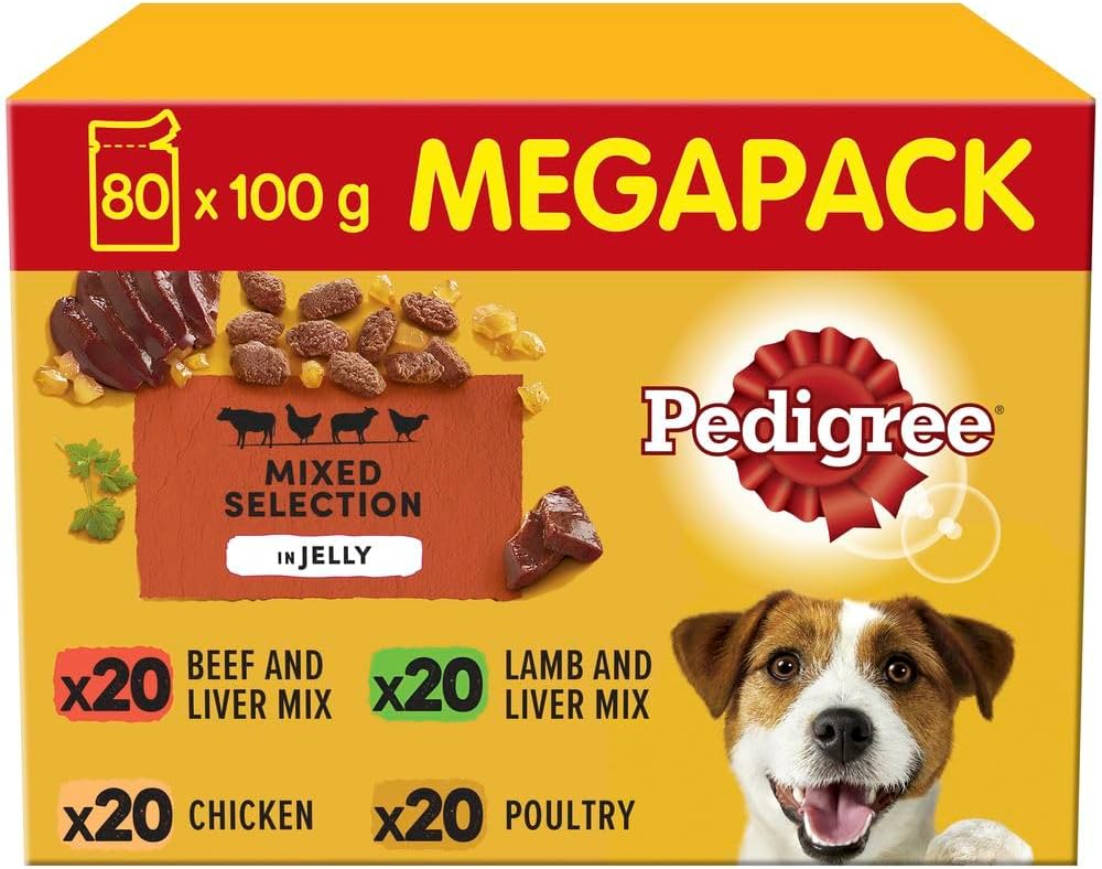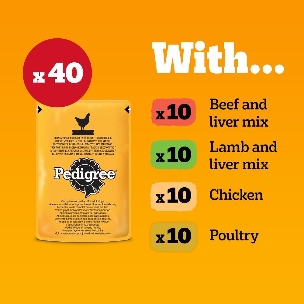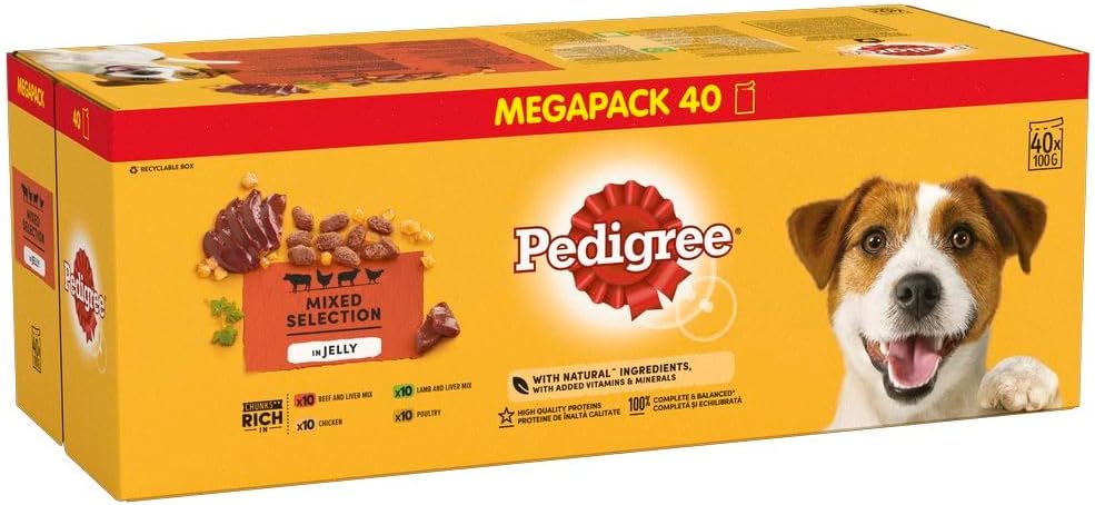 Pedigree Mixed Selection in Jelly 40 Pouches, Adult Wet Dog Food, Megapack (40 x 100 g)