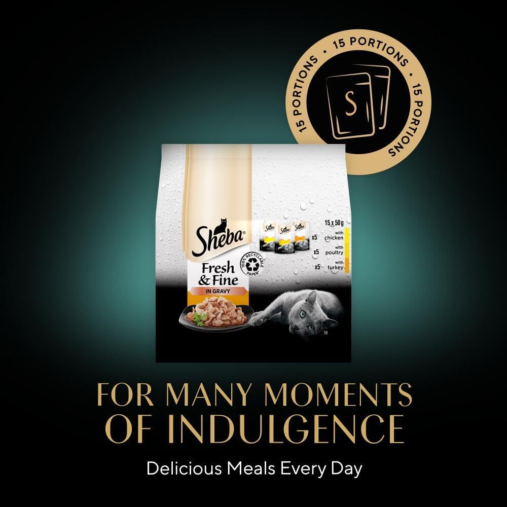 - Keep your feline friend interested time after time with delicately sliced pieces, served in a silky Sheba cat food gravy. Always an ideal serving for a fresh taste every mealtime