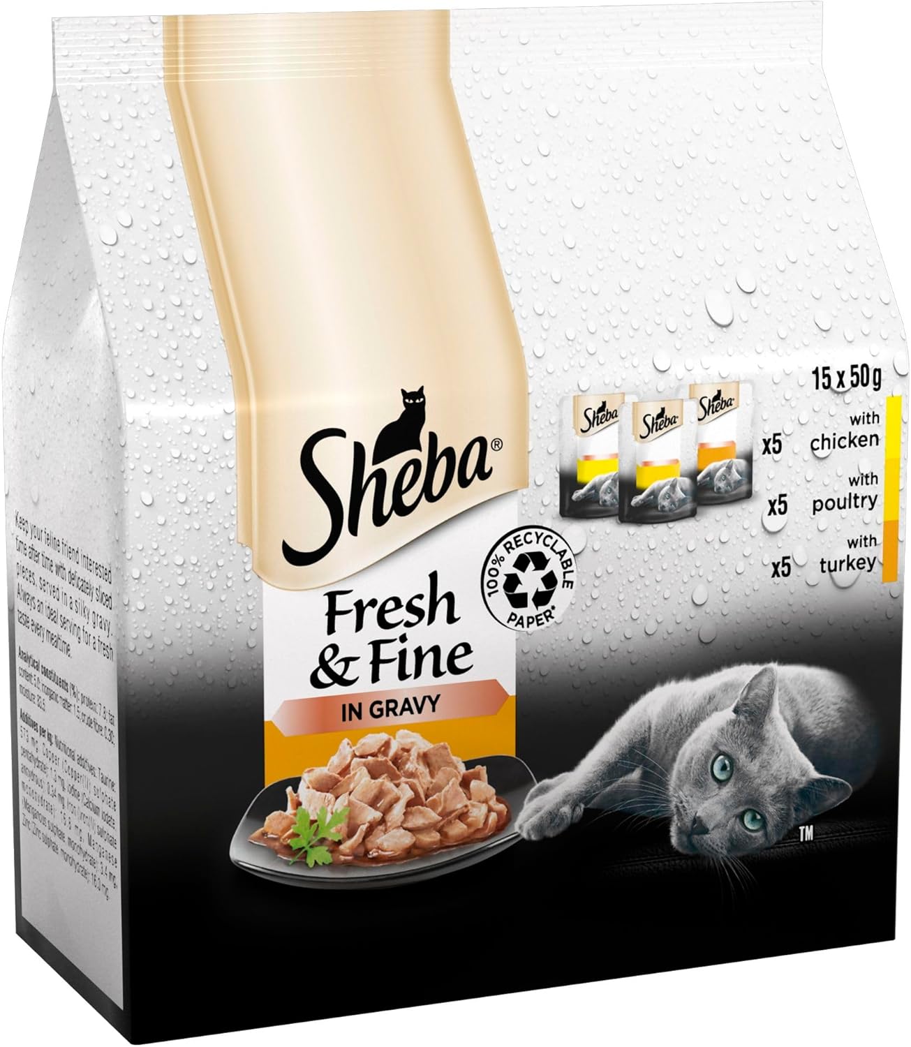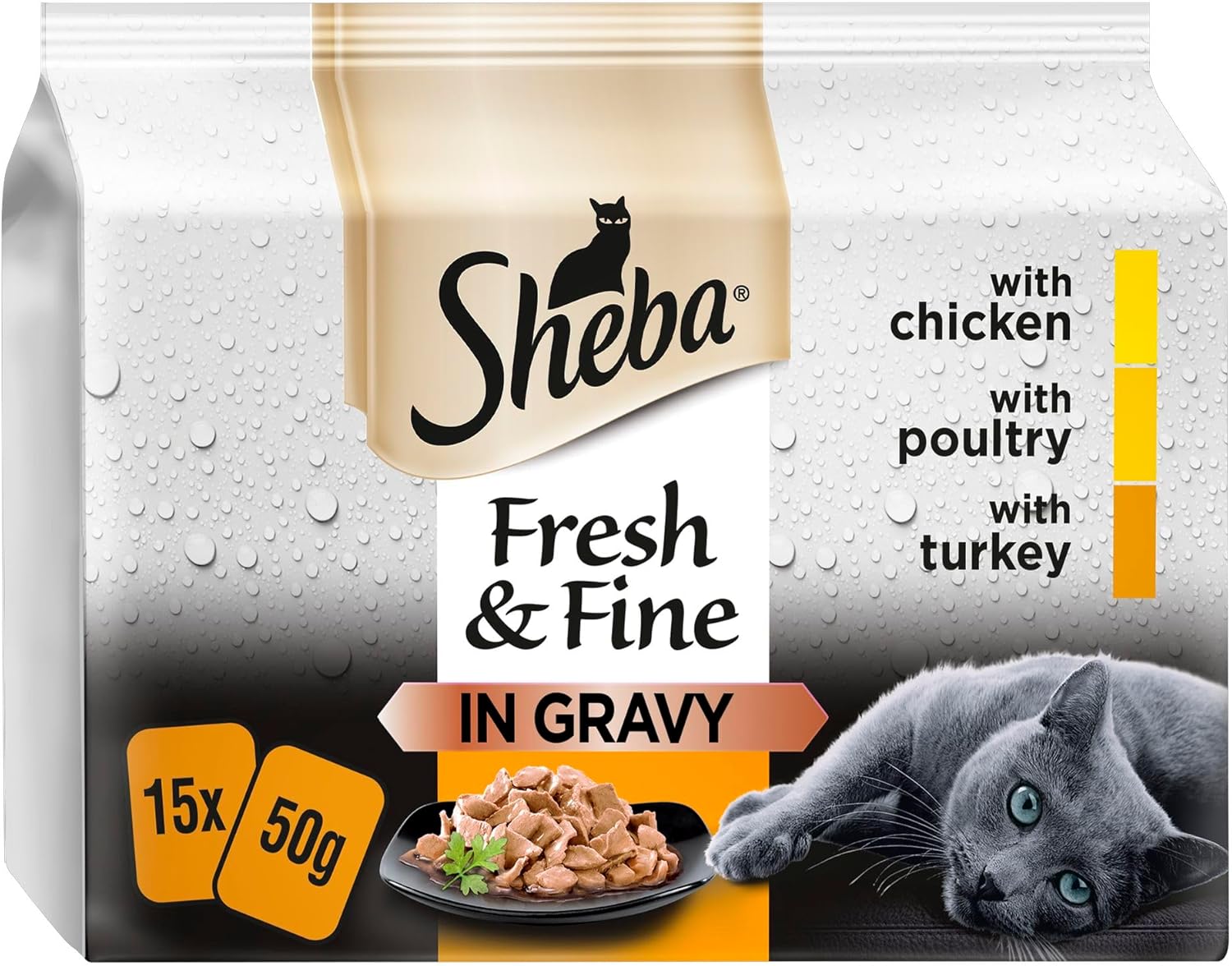 Sheba Cat Wet Food - Fresh and Fine - Cat Pouches Poultry in Gravy -3 x 15 x 50 g