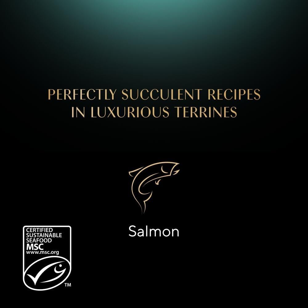 - Salmon cat food served in a convenient tray; easy to open and serve