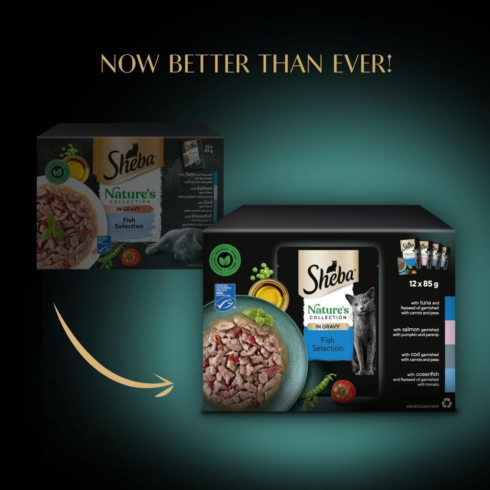 - Our Sheba cat food pouches have a 100% Recyclable outer wrap, helping preserve our environment