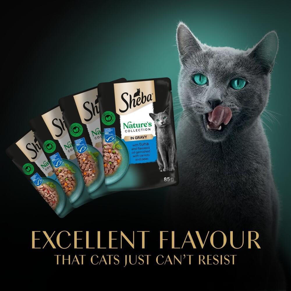 - Delight your cat-foodie with expertly prepared Sheba cat meals inspired by the taste of the most culinary metropoles from around world. Always an ideal serving for a fresh taste every mealtime.