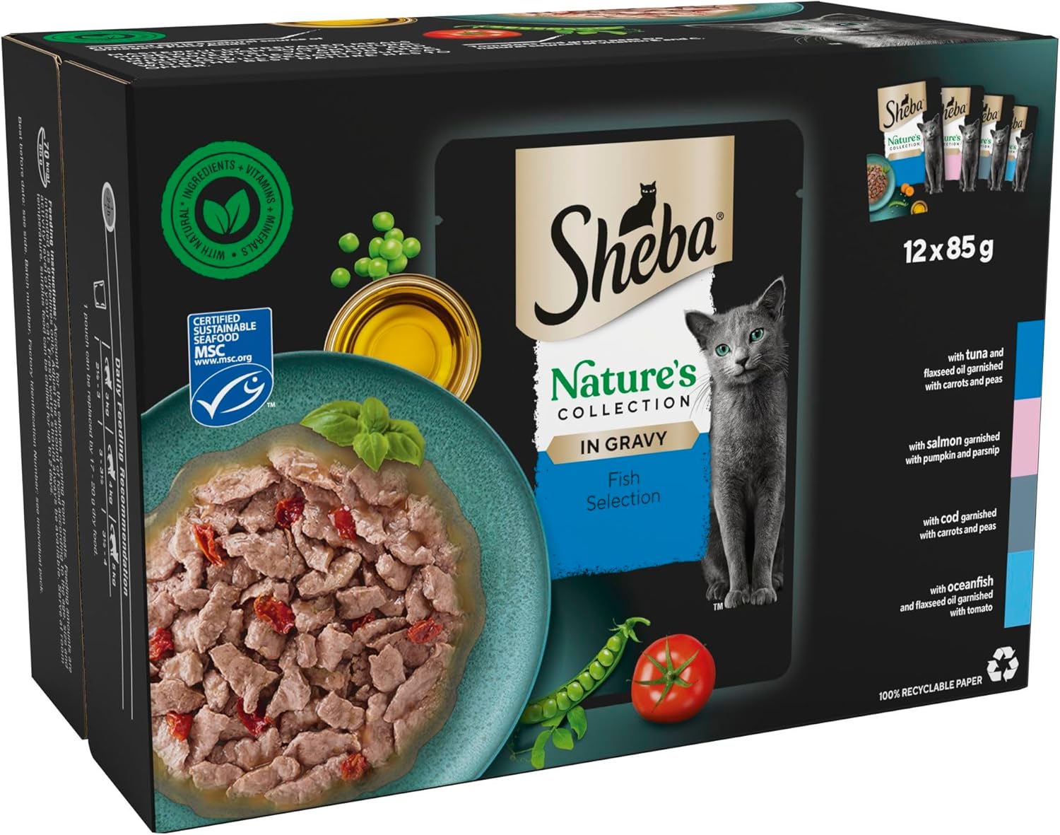 SHEBA Natures Collection Cat Pouches Fish Collection in Gravy 12x85g (pack of 4)