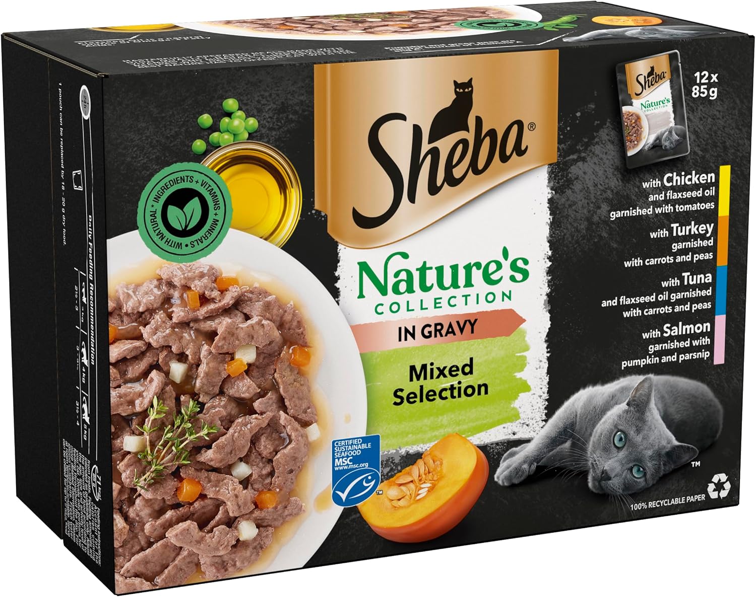 - Sheba cat food in gravy made with natural and quality ingredients that have been responsibly sourced from our trusted suppliers.