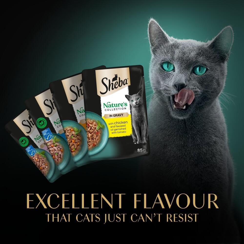 - Sheba cat food in gravy made with natural and quality ingredients that have been responsibly sourced from our trusted suppliers.