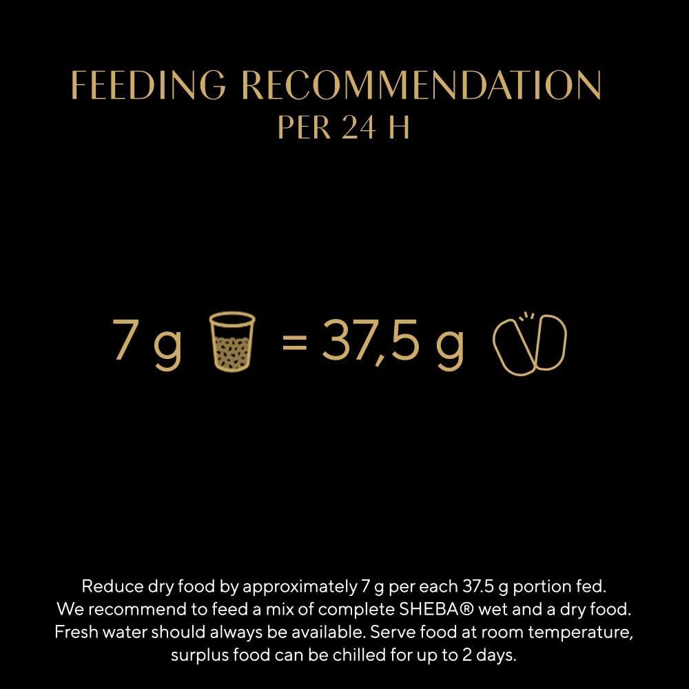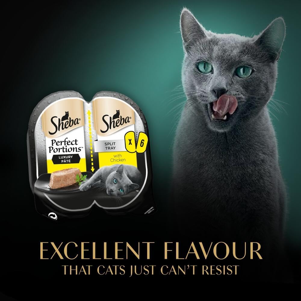 - Available in several irresistible Sheba flavours: Chicken, Salmon, Beef and Cheese and different sizes: x4 sachets, x9 sachets and x18 sachets